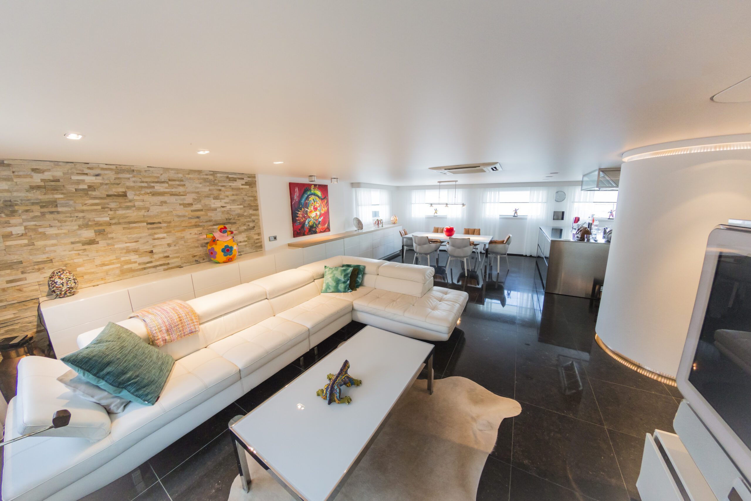 Dit schip kreeg een volledig metamorfose. De zwarte cockpit (van de oude Sustento) kreeg een witte make-over. En ook de woning werd volledig in het nieuw gestoken. Dankzij een bureau met steenstrips en nieuw meubilair op maat werd deze woning aangepast aan zijn nieuwe bewoners.