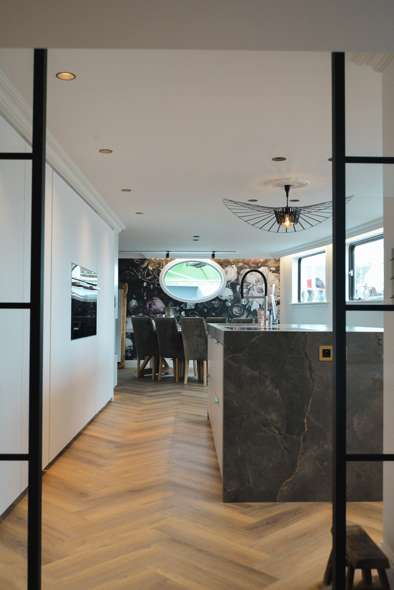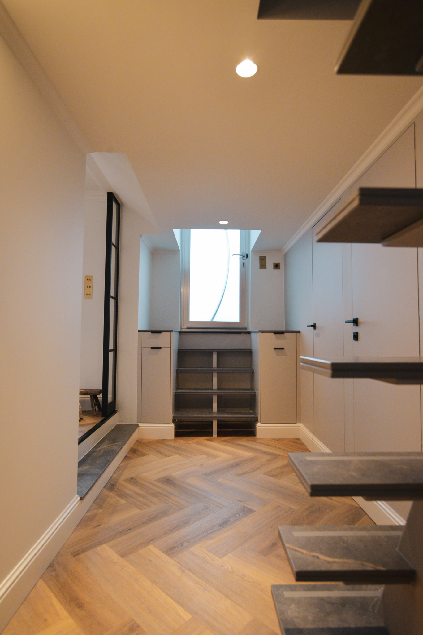 It’s all about the details, kan hier letterlijk genomen worden. De detailleringen in dit project zorgen ervoor dat de ruimtes zeer verfijnd overkomen. Daarnaast ademen de ruimtes pure klasse en elegantie doormiddel van de vinyl visgraatparket die door de gehele woning werd door getrokken.
